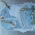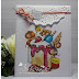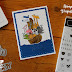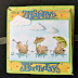 Even de Labels nog los. Dan kun je goed zien, wat er allemaal op zit. Bij het eerste Label de tekst van de set Clear Stamps Summer Lovin erop gestempeld. Vond dit wel toepasselijk bij het plaatje met de ondergaande zon. Heerlijk tropisch om te zien. Bij de middelste het stencil van de schildpad gebruikt en erachter de rand met Bubbles. Rechts het Label met het plaatje van de Knipvellen Seaside Greetings - Zomer gebruikt.